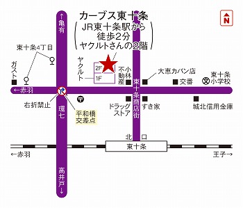 右手に見えるヤクルトさんの2階がカーブス東十条です。