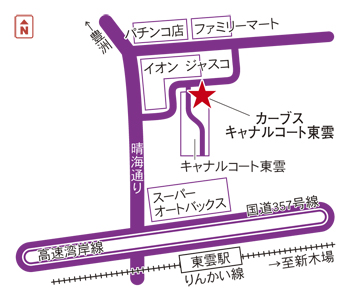 キャナルコート内、キャナルコート歯科クリニックキャナル東雲さんの向かい側、かしわぎクリニックさんのお隣がカーブスです。