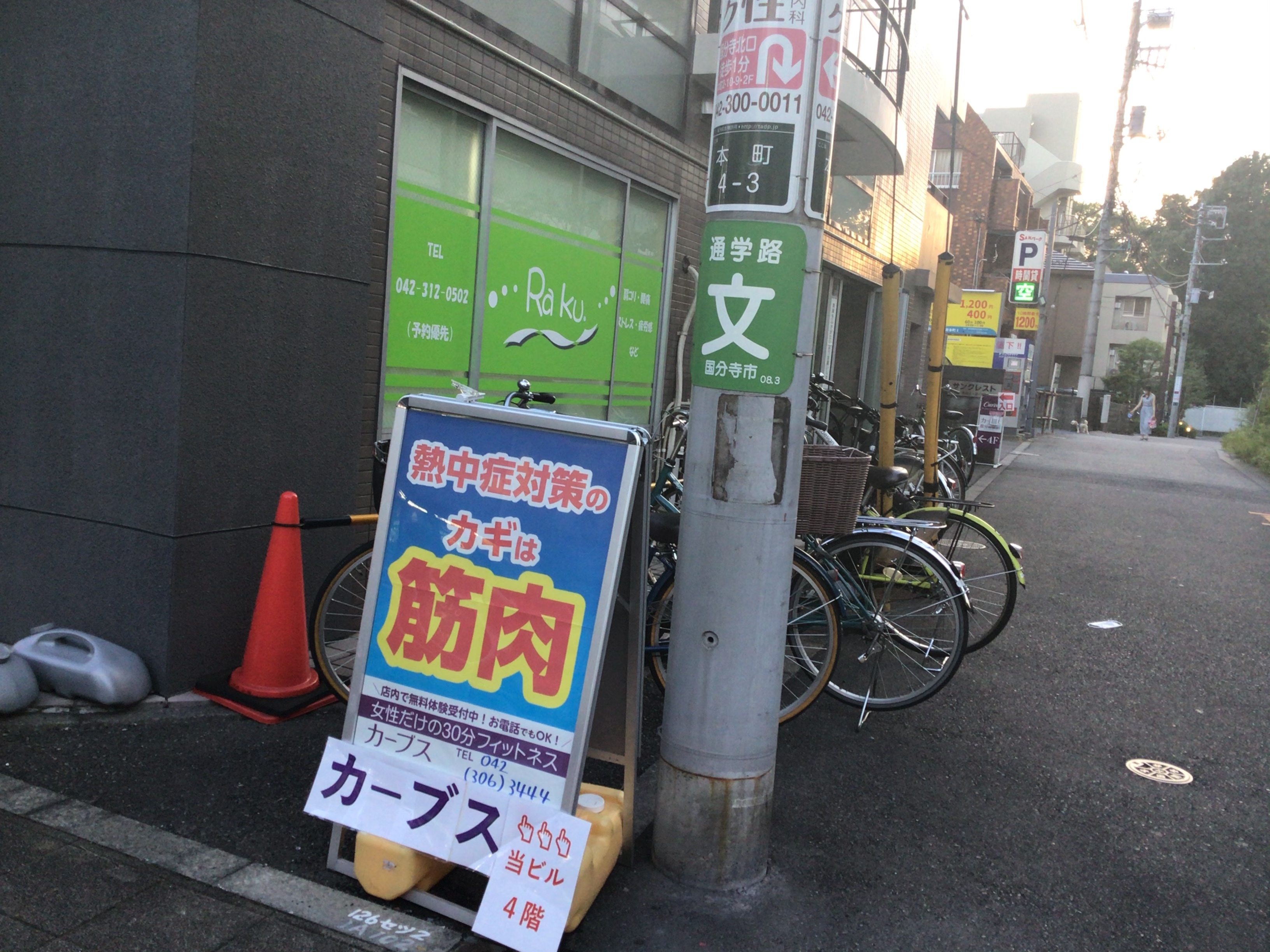 国分寺駅、北口を出て頂きましたら国分寺本町郵便局の方面へ直進してください。花沢橋近く、花沢通りのビル4階です。自転車もビルの一階に置くことができます。近隣に車を停めるコインパーキングもあります。 -