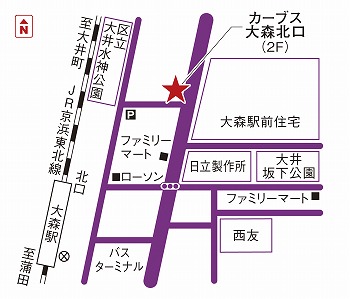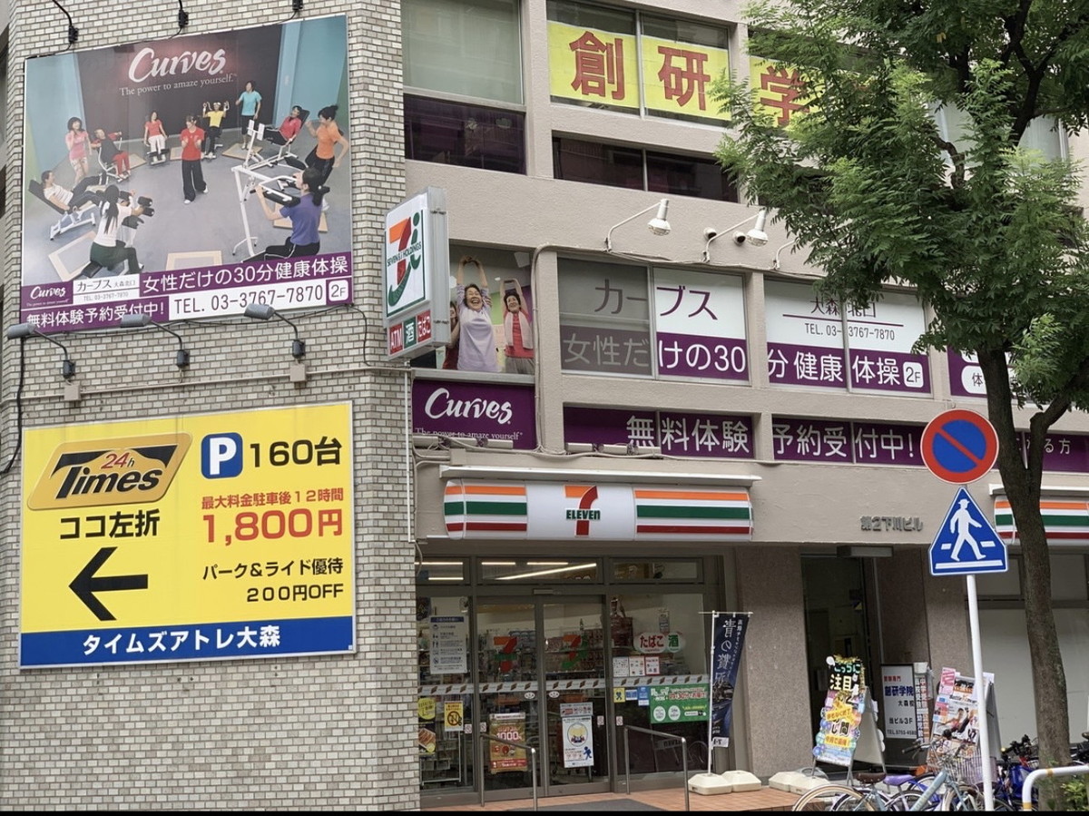 大森駅北口改札を出たら右に進みエスカレーターで下ったら左に進む。タイムズさんのパーキングを右折した下川第2ビル2階です。(1階がセブンイレブンさん)