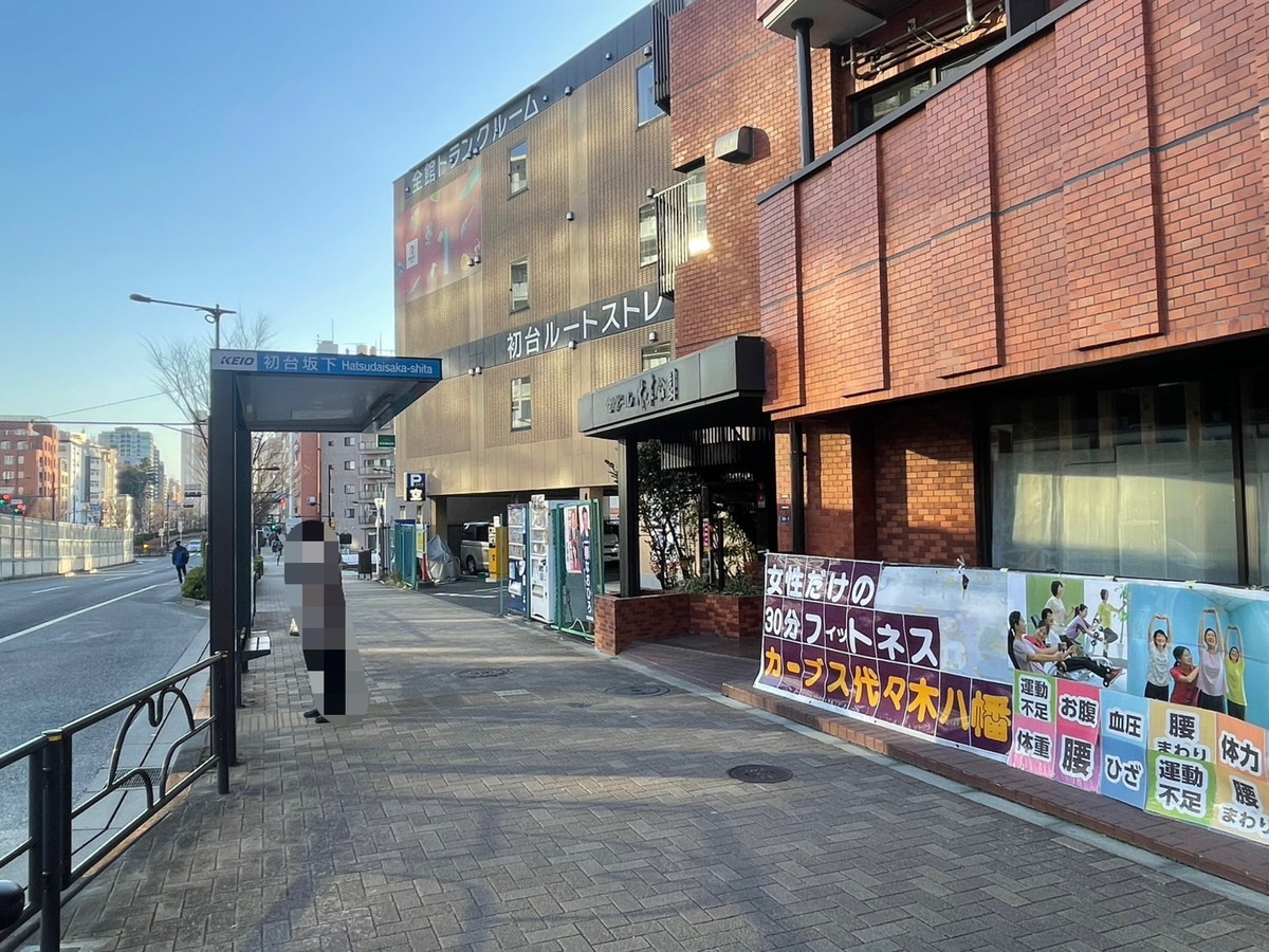 「初台坂下」(中野方面、阿佐ヶ谷方面)のバス停が目の前です。1階が福山通運になっており、階段を降りると入口があります! -