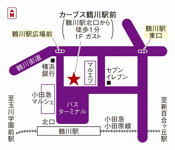 鶴川駅停留所(小田急バス・神奈川中央交通)を下車してすぐ!マルエツさんの隣、鈴木ビル5階がカーブス鶴川駅前店です。
