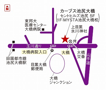 東急バス(渋谷方面行き)大橋停留所より徒歩2分渋谷方面に直進レンガ色のビル1階に早稲田アカデミーさん大橋交番の入ってるビルでエレベーターで5階がカーブス池尻大橋です。 -
