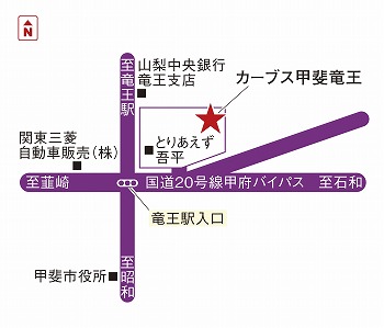 JR中央線 竜王駅南口を国道20号方面へ向かい直進5分