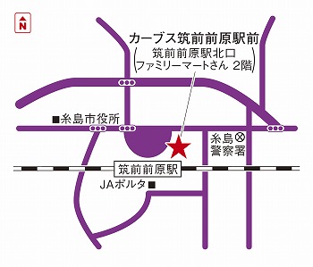 JR筑肥線筑前前原駅北口を右へ曲がりファミリーマートさん横の階段のぼって2階
