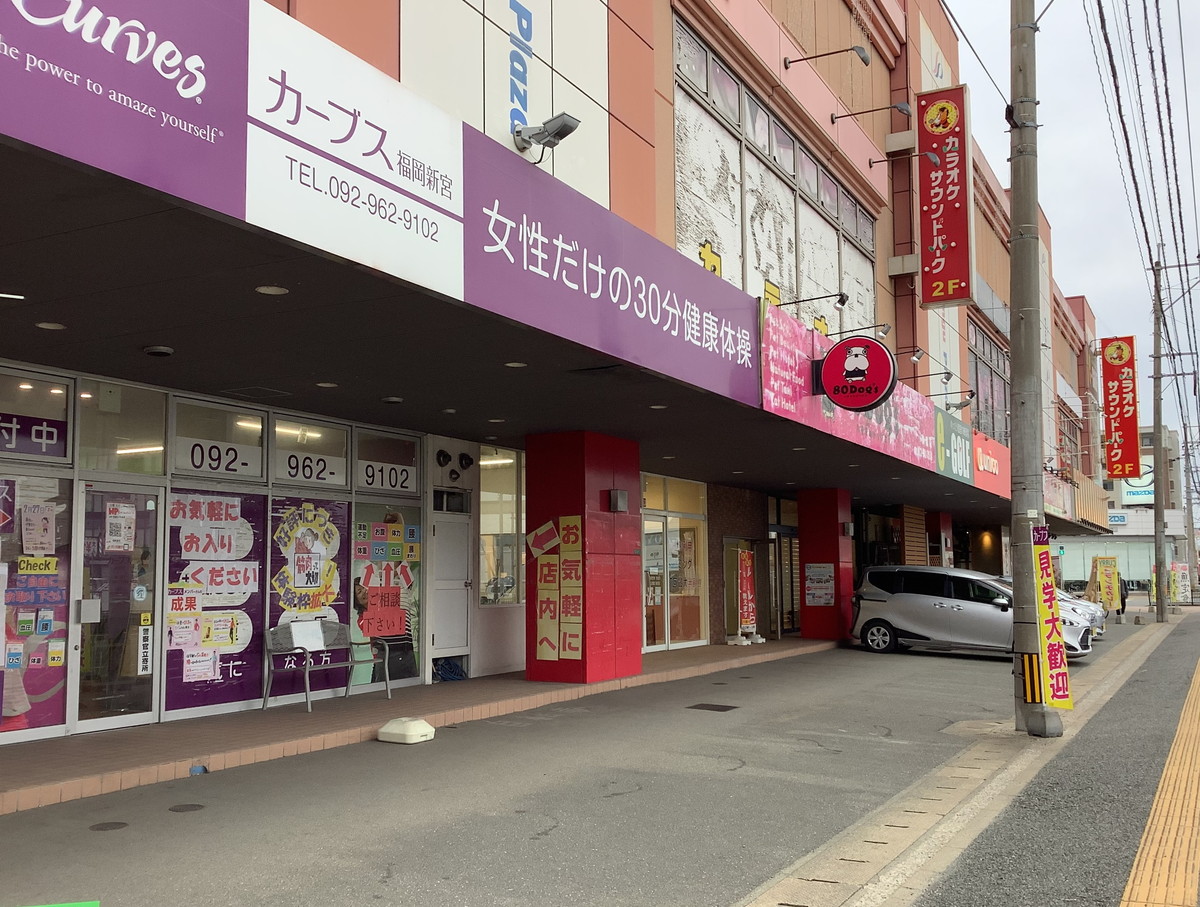 福工大前駅から徒歩12分。新宮プラザ一階の旧3号線沿いにあります。