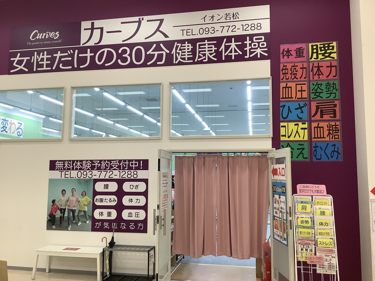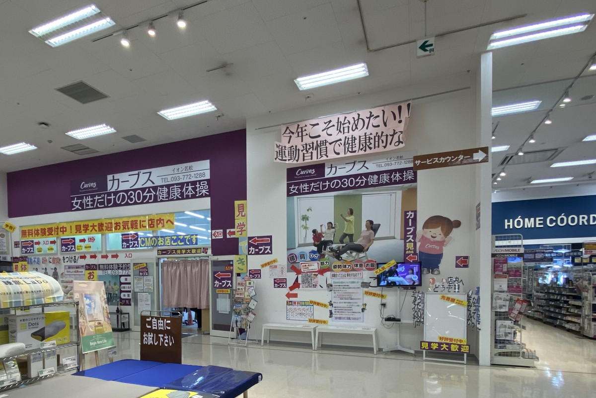 二島駅より徒歩10分 国道199号線沿い イオン若松ショッピングセンター1階中央入り口から入り直進、寝具売り場のお隣がカーブスイオン若松です