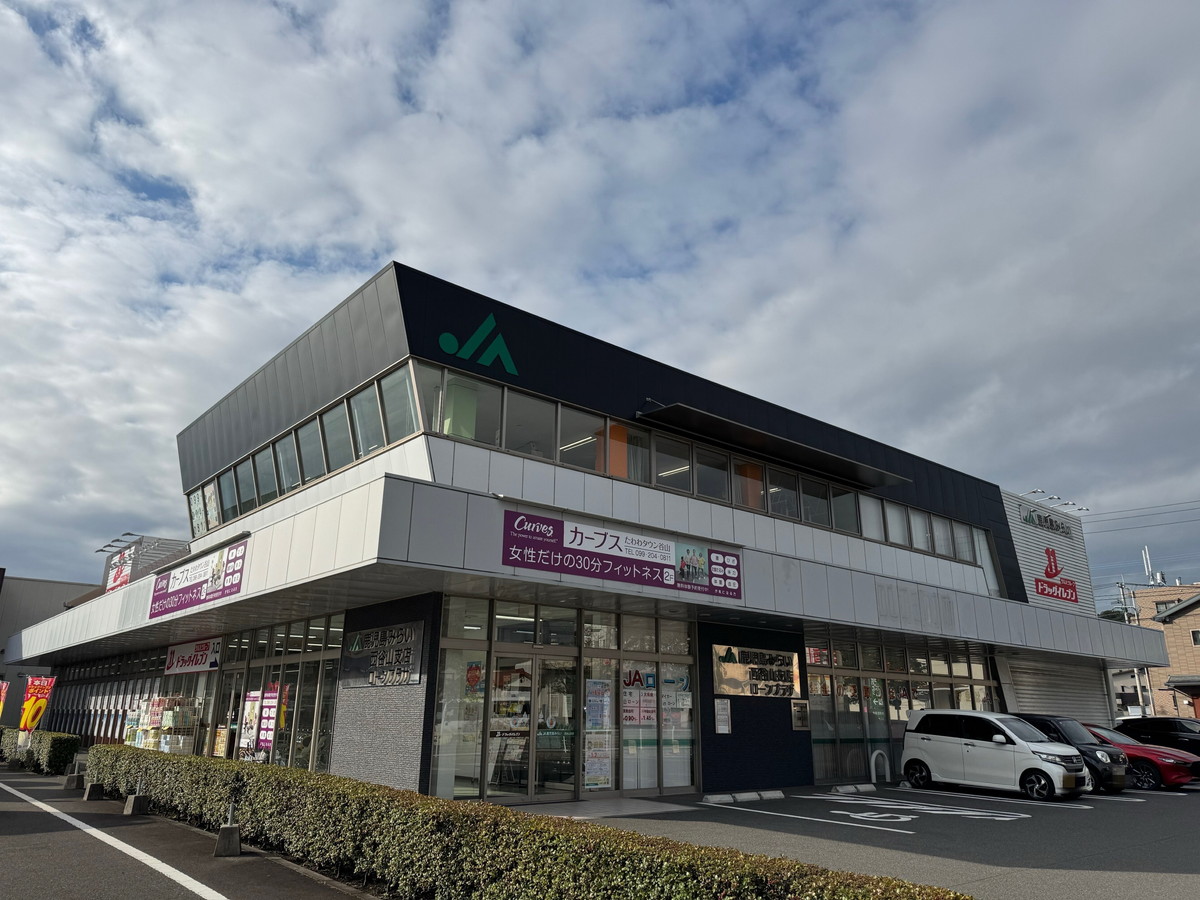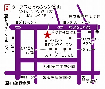 ショッピングモール「たわわタウン谷山」ドラッグイレブンたわわタウン谷山店さま正面入口から階段昇って2階。1階はJA鹿児島みらい西谷山支店さま。