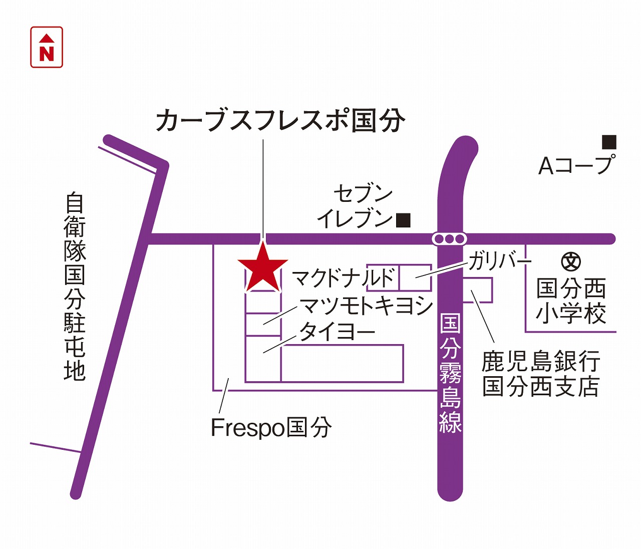 フレスポ国分内。同施設内にタイヨーさんもあります!お買い物ついでにパッと運動ができますよ♪ -