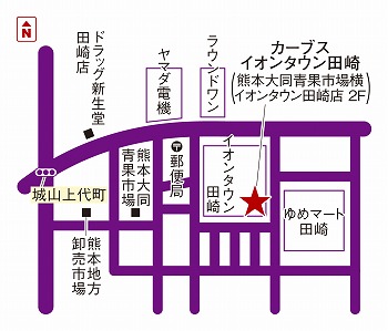 九州産交バス田崎市場前停留所より徒歩3分。イオンタウン田崎店正面入り口、エレベーターで2階に行き降りて左。堺整骨院さんの隣