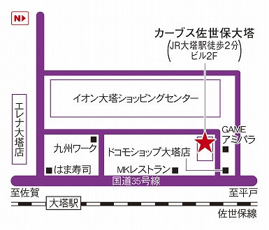 2)イオン大塔ショッピングセンターさんの敷地内にある携帯ショップdocomoさんの正面、ピンクの外観のビル2階です。