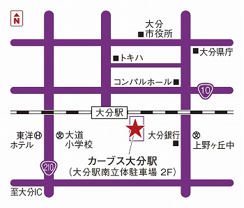 大分駅横です。第2駐車場2階の自動扉を抜けたらすぐ左手です!