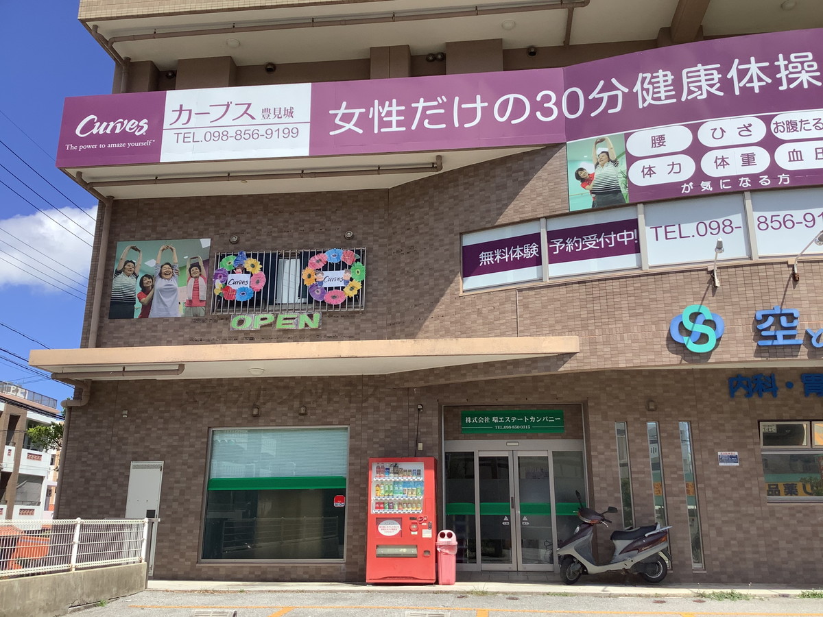 海邦銀行の道向かい側、空と海のクリニック2階奥。店舗マンション周辺に駐車場も完備しています。 -