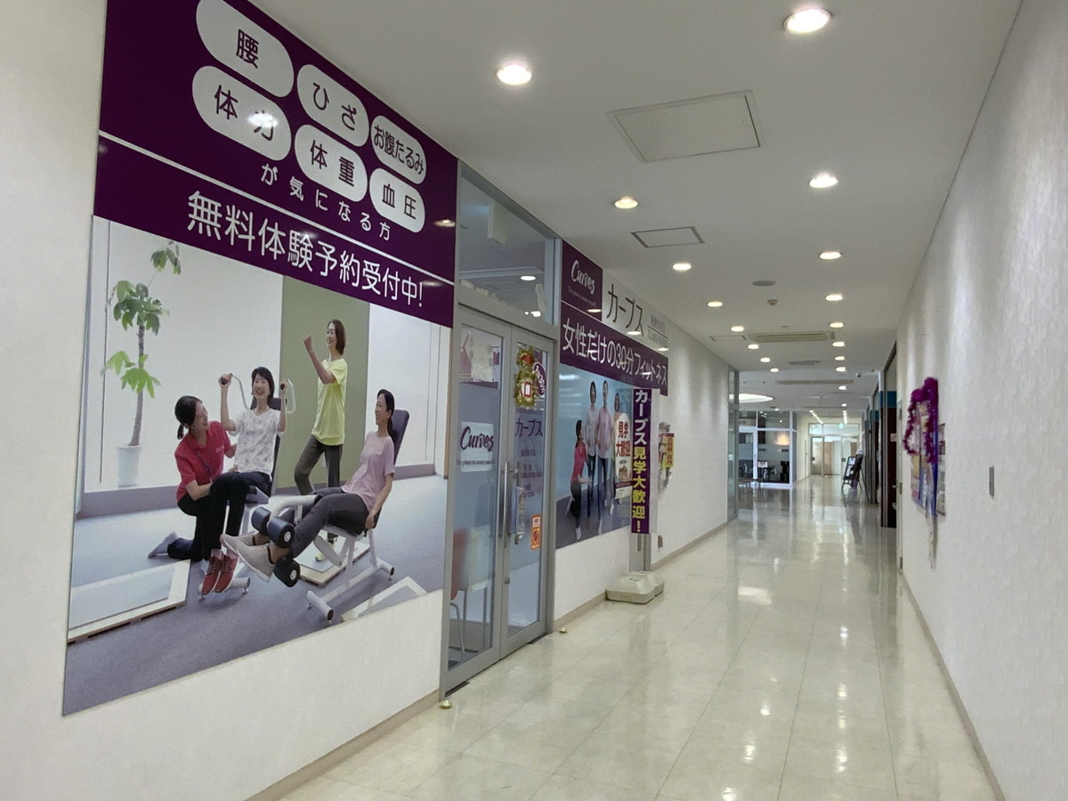 大手口センタービルの西側出入口から入り、中央ロビーのエスカレーターより2階、登って左手にある愛文堂書店さんを正面にして、右側通路に入るとお店の入口があります。