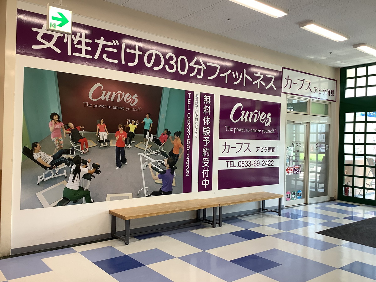 お車でお越しの方は、アピタ蒲郡店1階のベルナールさんを右手に見ながら直進していただき、鞍馬さんの向かい側がカーブスアピタ蒲郡です。