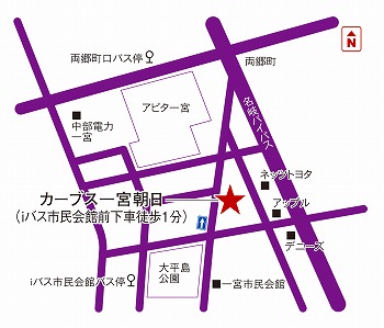 テラスウォークさんを超えて、南出口から平面駐車場の奥、徒歩約3分 紫色の看板が目印です