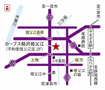 平和堂祖父江店2階。ダイソーさんの向かいにあります。