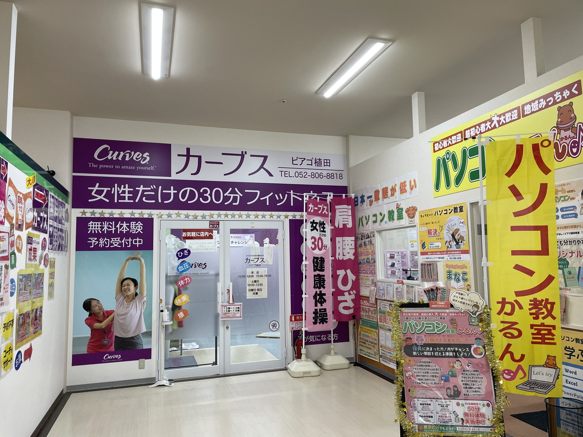 ピアゴ植田店正面入り口からエスカレーターで2階に行き、降りたら真っ直ぐ進む。パソコン教室かるんさんのお隣