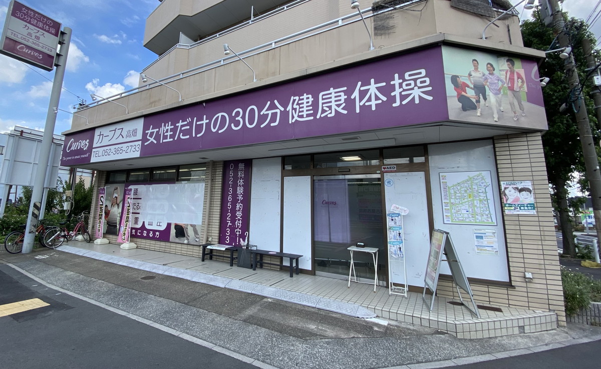 地下鉄東山線2番出口を出て西へ直進し、エディオンさんを通り過ぎて1つ目の信号を渡ってすぐのプレステージ野田1階がカーブス高畑です。