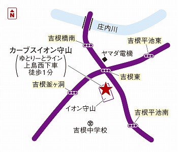 名古屋市営バス 上島(西)駅から徒歩5分にある、イオン守山店の1階にあります。 -