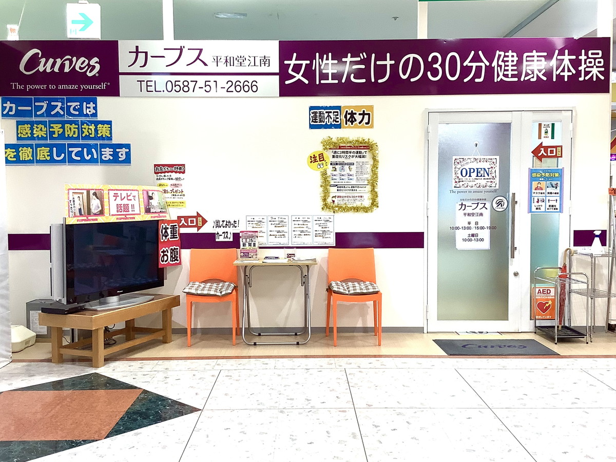 降りたら左折し、リメイク工房さんを左折し、ヘルストロンさんのお隣がカーブス平和堂江南店です