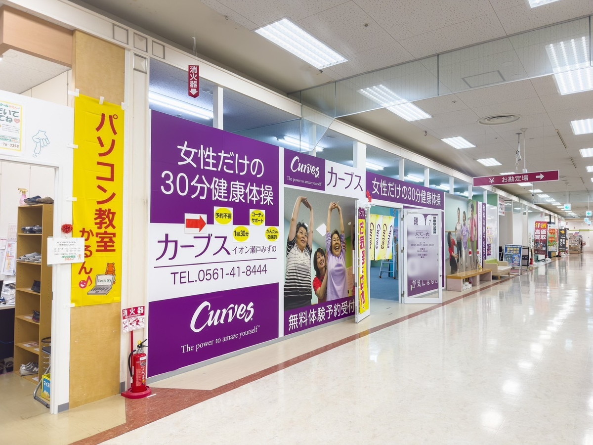 イオン瀬戸みずの店中央エスカレーター上がって左手、紫色の壁が目印です。