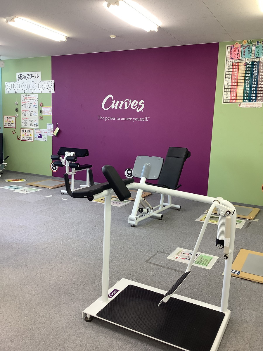エスカレーターを上がったら、そのまま突き当たりまで真っ直ぐ歩くとカーブスです。