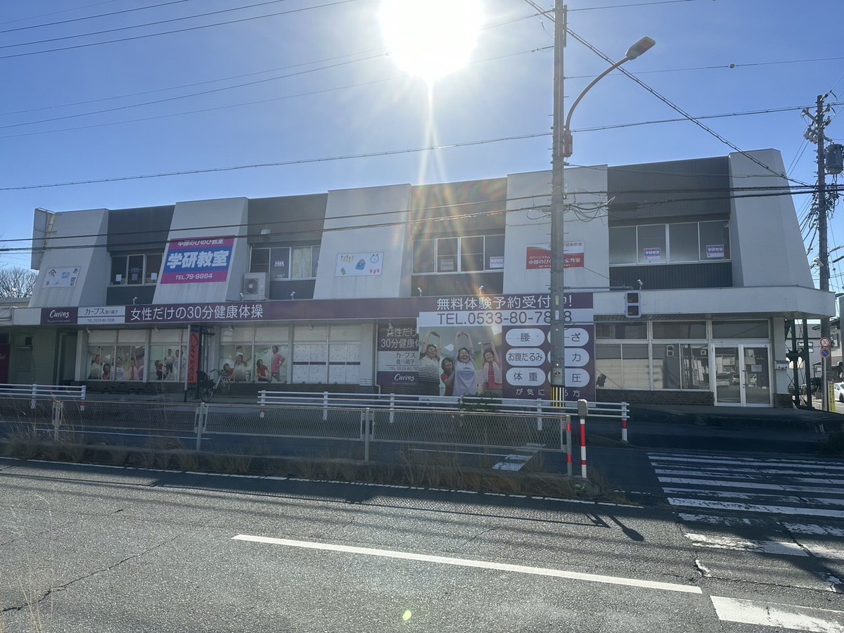 国道1号線「桜町」、姫街道「諏訪橋西」の信号を豊川文化会館方面へ。代田郵便局さんの目の前で、旧プラサさんの1階です。