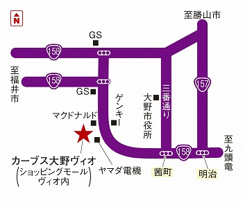 北から2つ目の入り口を入って右手すぐがカーブス大野ヴィオです