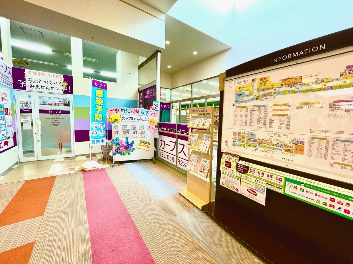 モレラ岐阜グリーンゲート東入口から入り左手に出てくるエスカレーターを上がるとすぐダイソー前にカーブスです!