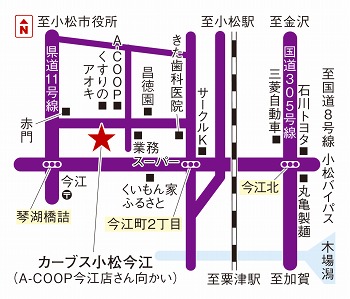 Aコープ今江店さん向かいの紫の看板が目印です!
