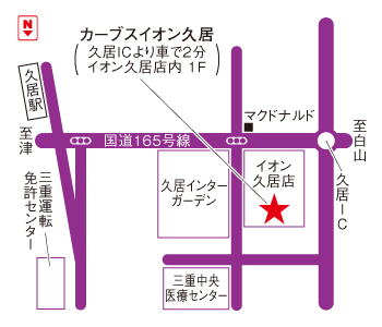 国道165号線沿いのイオン久居店内1階、西出入口(ATM側)から入ってすぐ左手にあります♪