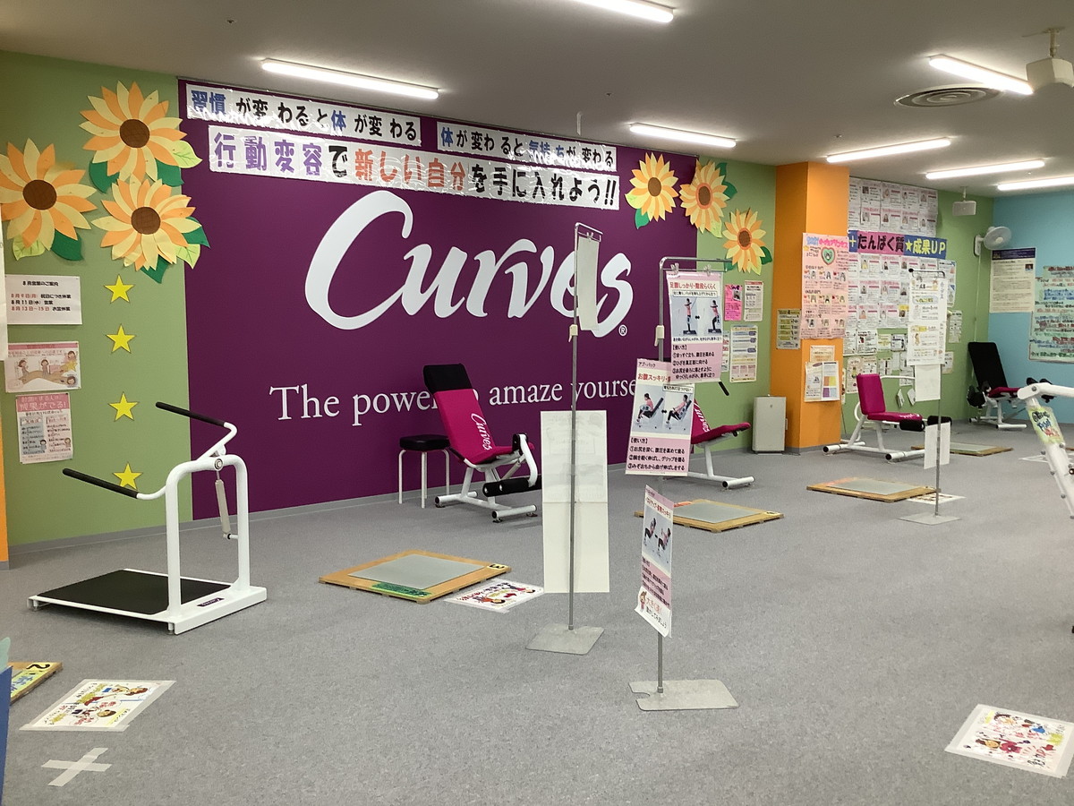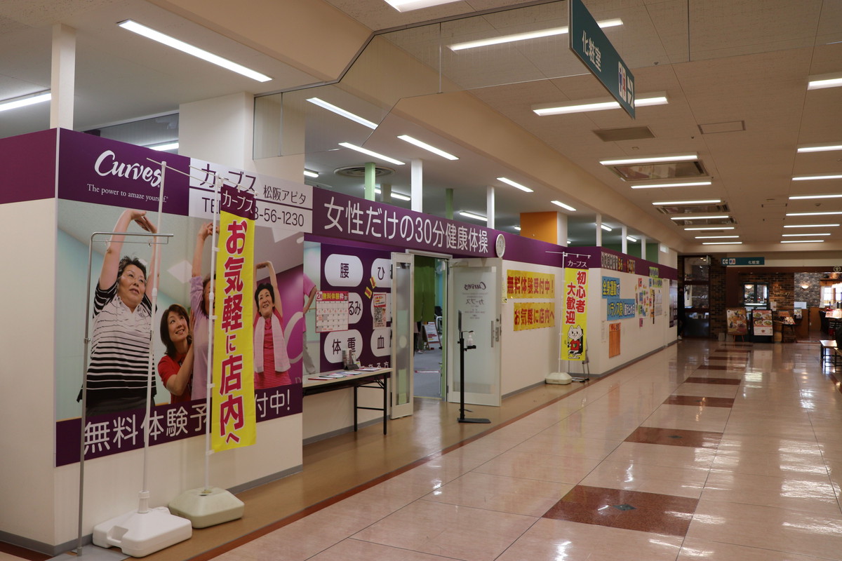 アピタ松阪三雲店さんのガソリンスタンドさん側の入り口から入ってすぐのエスカレーターで2階へ上がると、ダイソーさんがありますので、すぐ隣にカーブスがあります。
