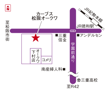 JR「徳和駅」から徒歩11分、近鉄「東松阪駅」から徒歩16分。オークワ松阪下村店さんの敷地内です。