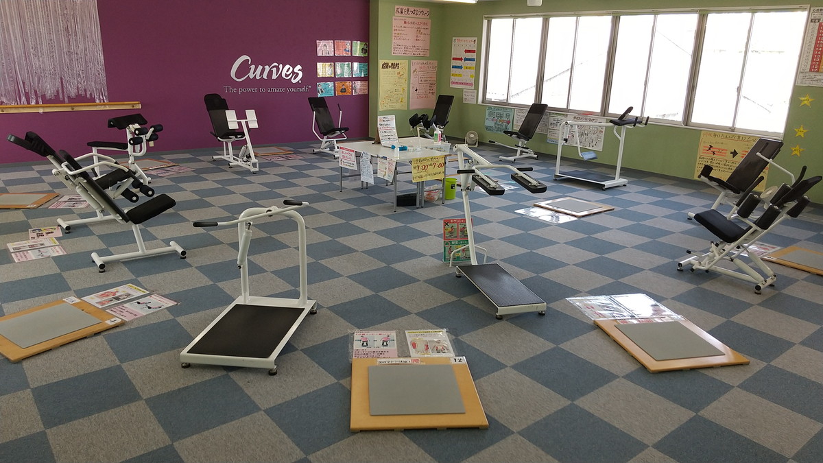 新北街道沿いの家族葬のラビューさんの隣の建物の2階がカーブスです。