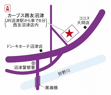沼津駅から車で6分。西友沼津店さんのテナントに入っています。
