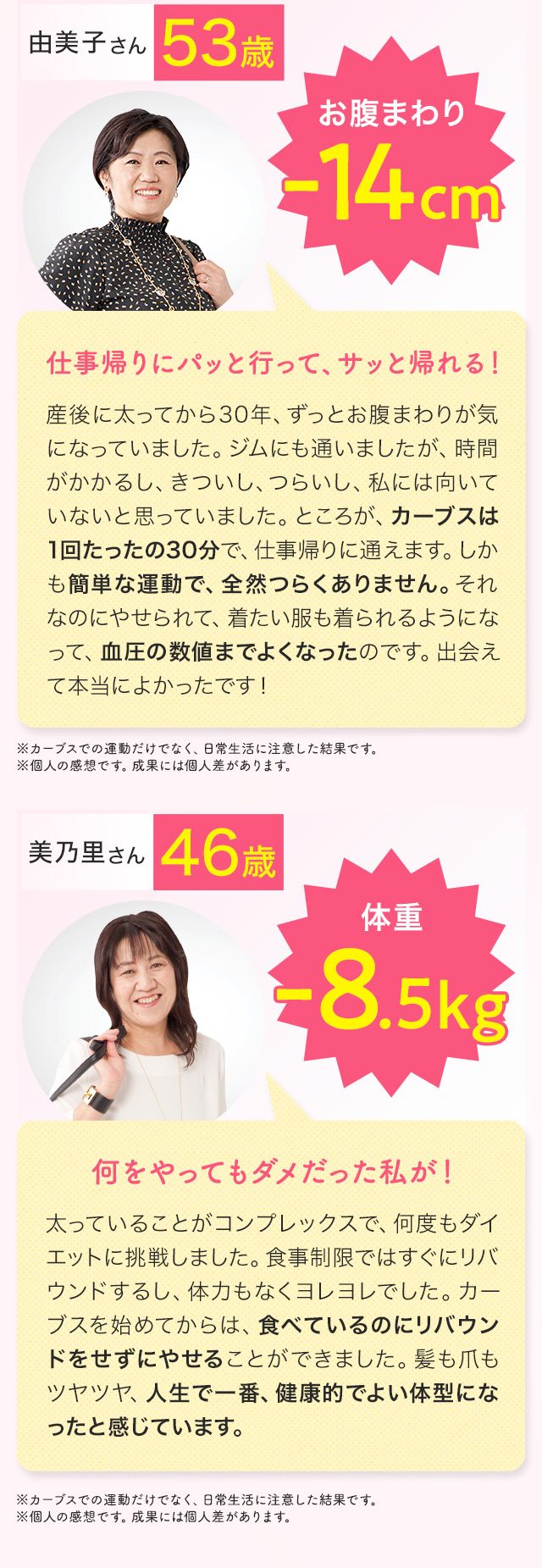 ご記入頂いた情報は、株式会社カーブスジャパンより カーブスのご案内をさせて頂く以外の目的では使用致しません。