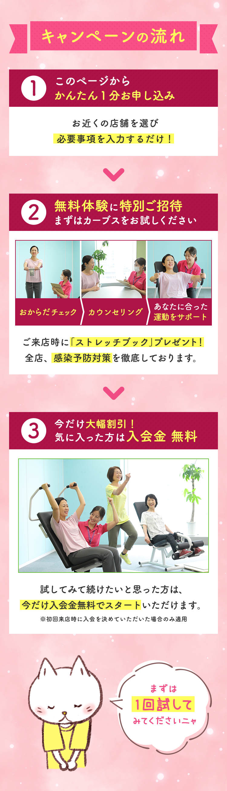 ご記入頂いた情報は㈱カーブスジャパンのプライバシーポリシーに基づき