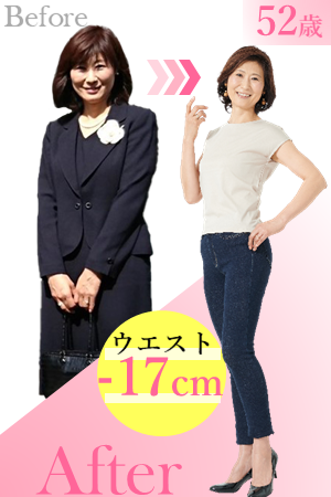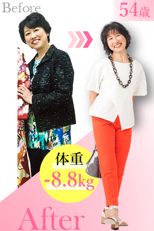 週1回通っていますが、肩こりが解消されただけでなく、自然と体型が変わり、体年齢が8歳も若返りました。以前は「入る服」「体型を隠せる服」を選ぶしかなかったのに、自分が「好きな服」「着たい服」を選べるようになってうれしいです。