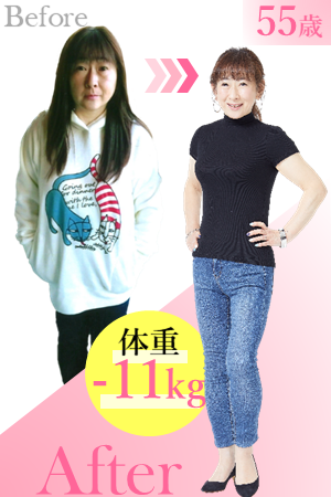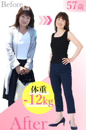 - 体重 55.8kg → 43.6kg 12.2kg減
