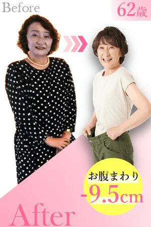 - お腹まわり 92cm → 82.5cm 9.5cm減